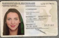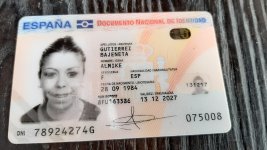 ID Spain female Mayra Elizabeth front and selfie 1987 VALID
